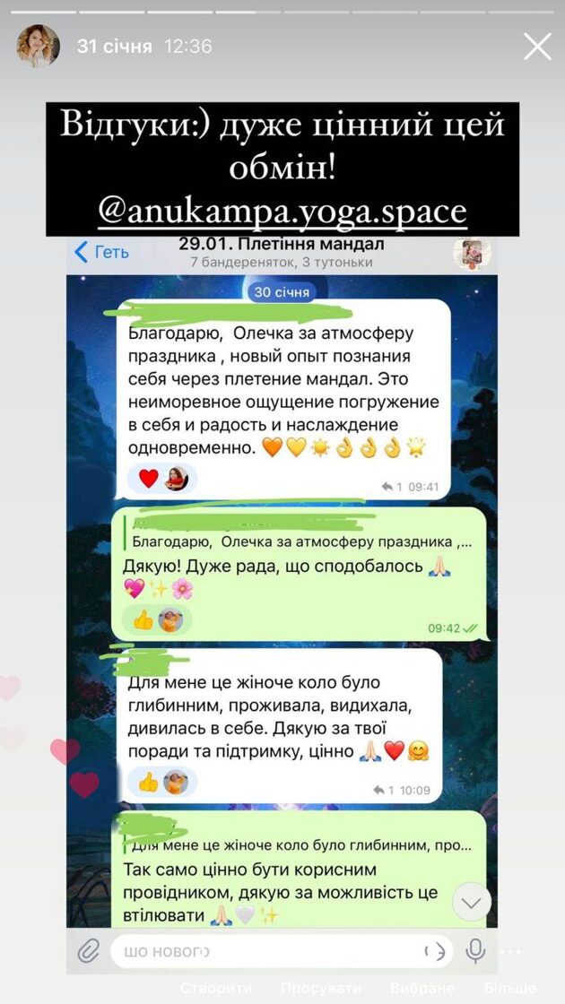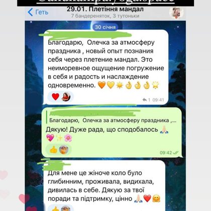 Відгуки з занять, подій, консультацій онлайн та офлайн