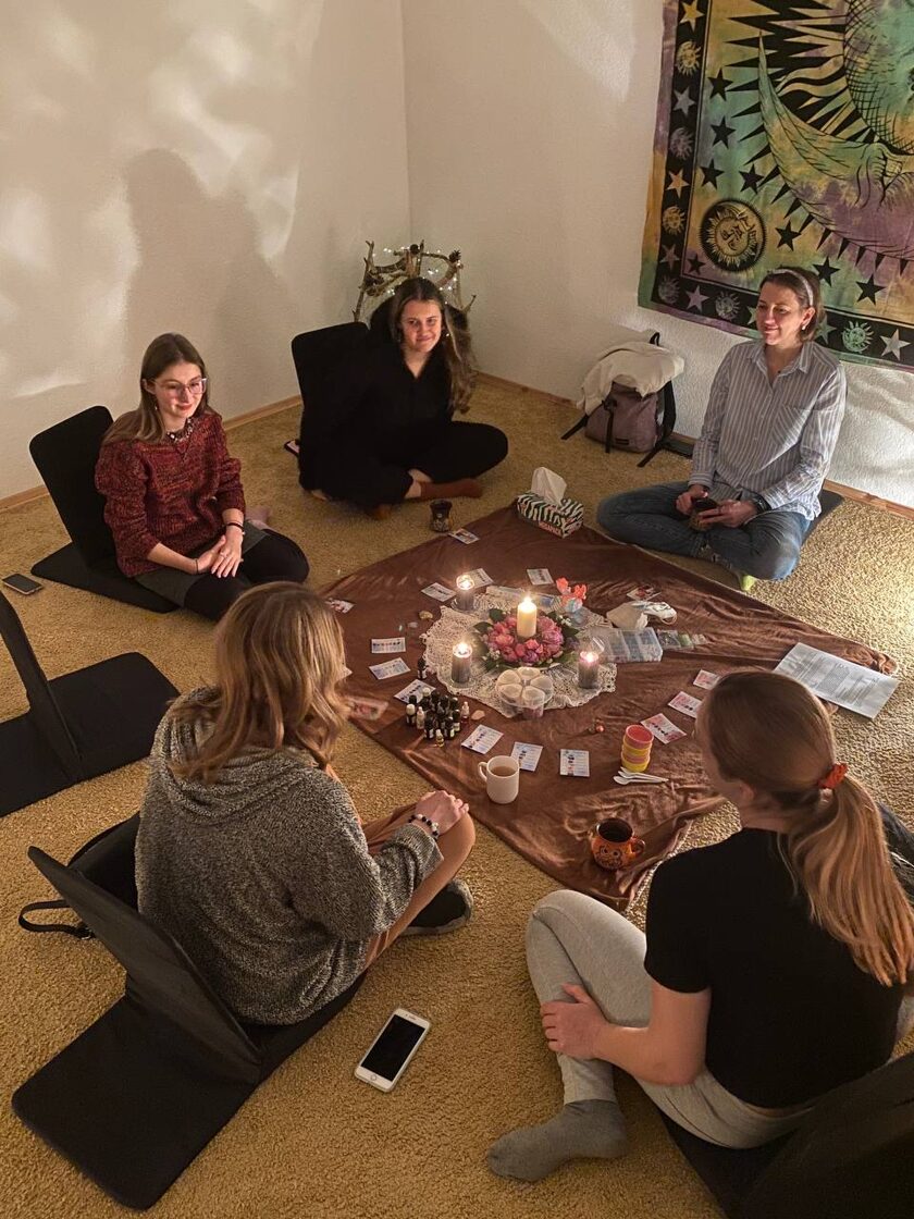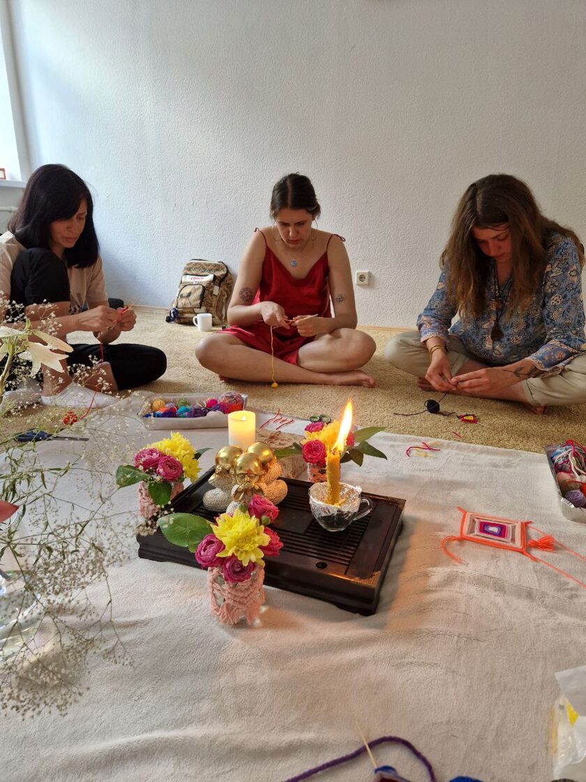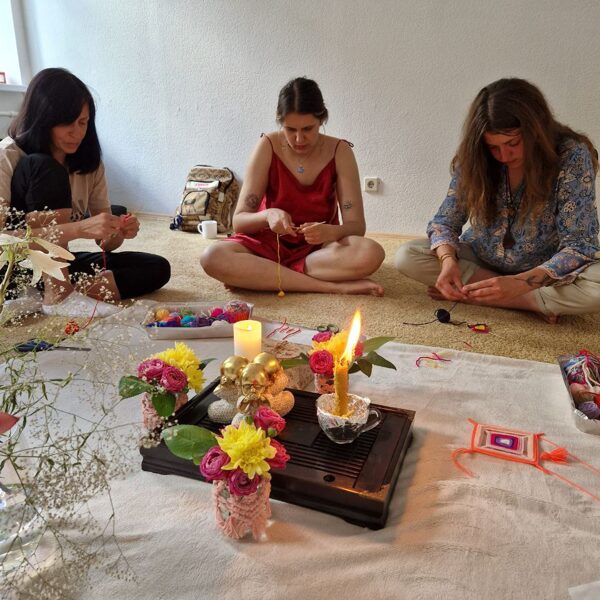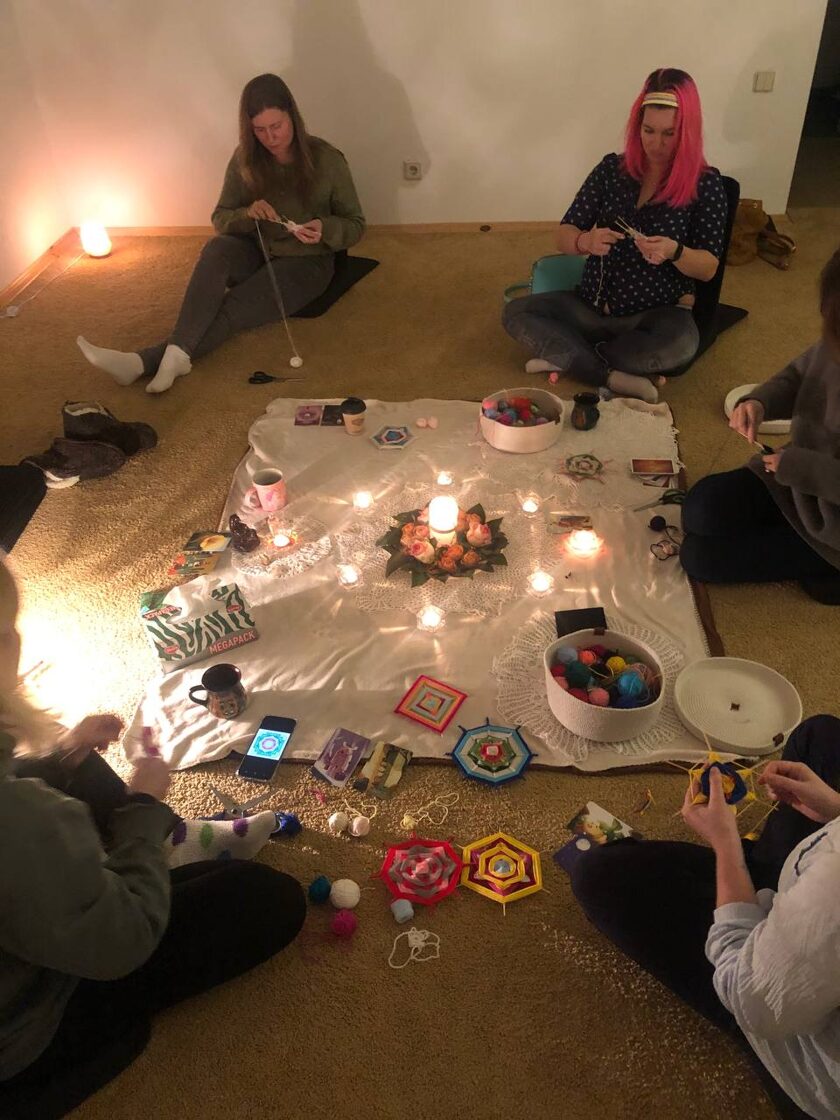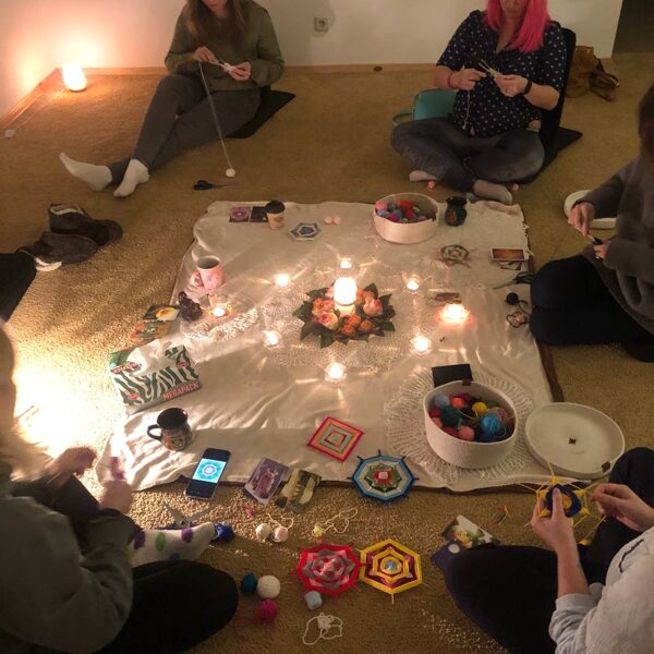 Групові жіночі зустрічі, де ми медитуємо, спілкуємось, займаємось рукоділлям чи робимо практики для трансформації, очищення та наповнення.